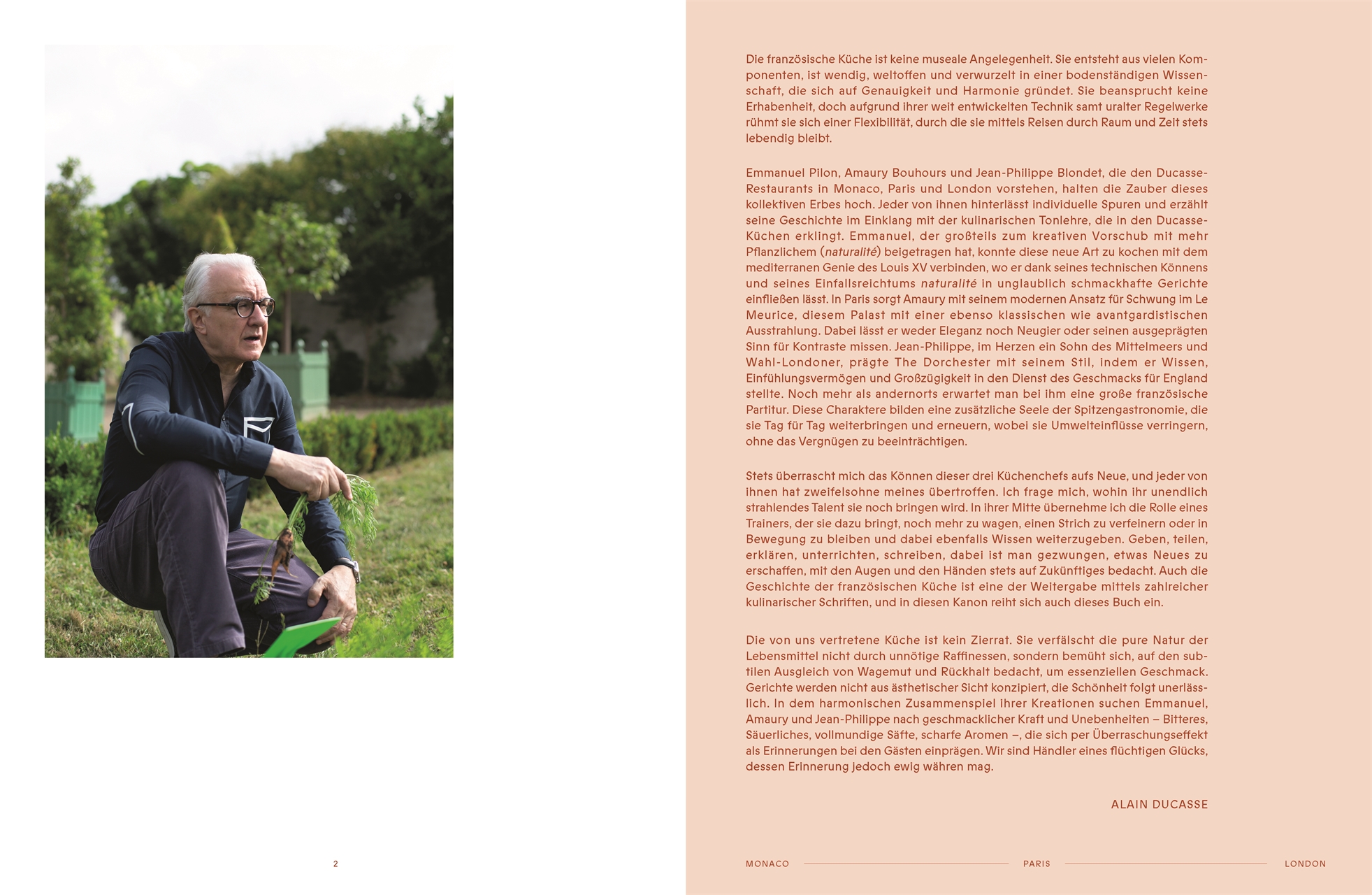 Alain Ducasse, vielfach ausgezeichneter und in aller Welt verehrter Spitzenkoch, legt ein einzigartig schönes und inspirierendes Buch vor. Es feiert den Hochgenuss der modernen französischen Küche, wie ihn die Chefs der legendären Ducasse-Restaurants in Monaco, London und Paris, Emmanuel Pilon, Amaury Bouhours und Jean-Philippe Blondet, vermitteln. Ausgehend von einer gemeinsamen, von Ducasse geprägten DNA gelingt es jedem von ihnen, individuelle Spuren und Geschichten zu hinterlassen, von denen dieses außergewöhnliche Kochbuch in 135 Rezepten erzählt. Ob Grüner Spargel aus der Provence mit Kresse und Nori-Alge, Kaisergranat mit Pistazie und Kaviar oder Kürbis, grüner Anis und Yuzu-Granité: jede einzelne Kreation verkörpert die kulinarische Essenz und den individuellen Stil der Ducasse-DNA, der Sinne und Seele verführt.