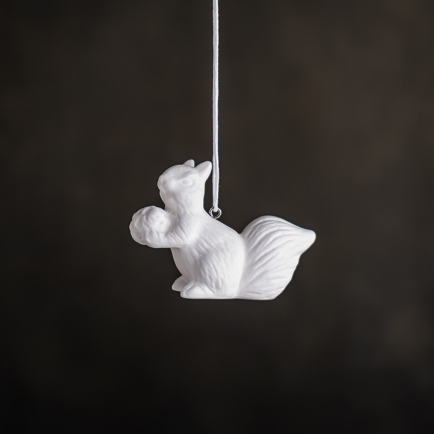 Entzückendes Eichhörnchen aus Bone China mit Nuss zum Hängen.