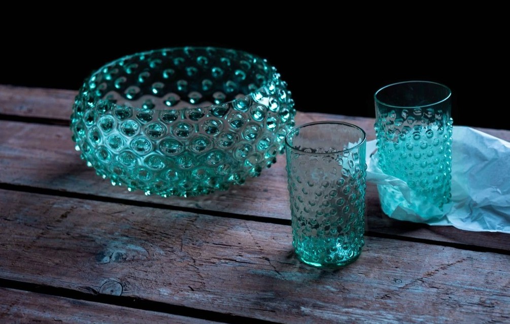 Das Licht bricht sich wunderschön in den “Warzen”, die die Glasmacher mit großer Sorgfalt von Hand ziehen.
