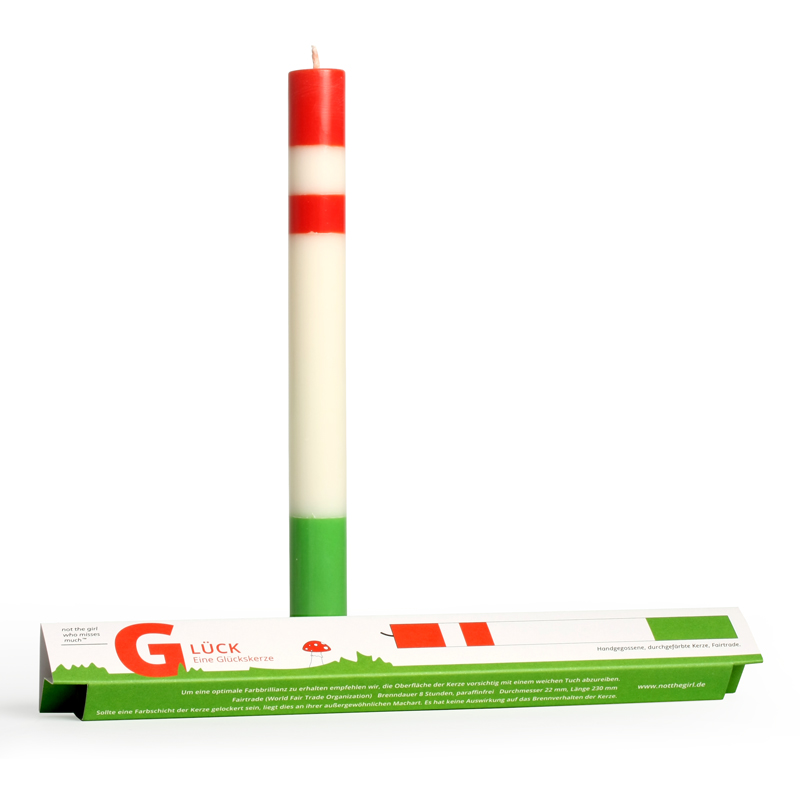 Ein Geschenk, Glückwunsch oder ein Gruß – jedes Thema findet bei uns seine passende Kerze, einzeln in einer farbigen Kartonage verpackt. Die Kerze besteht aus durchgefärbtem Wachs – aufwendig wird bei ihrer Fertigung Farbschicht für Farbschicht von Hand gegossen.