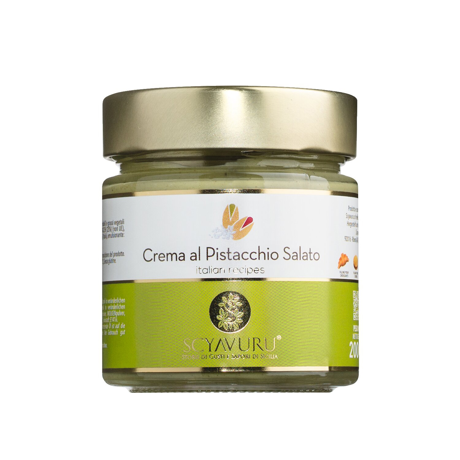 Vollmundige, nicht zu süße Pistaziencreme aus Sizilien mit Meersalz gewürzt. Das Salz unterstreicht noch mehr die Feinheit des Pistaziengeschmacks. Neben ihren Vorzügen auf einem Toastbrot eignet sie sich sehr gut zum Eismachen, als Füllung für kleine Windbeutel und zwischen mürben Butterkeksen.